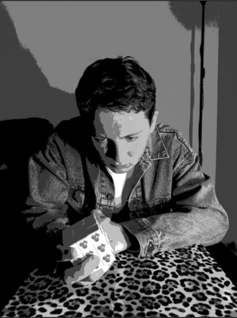 My final assignment relating to photography was to draw a vector illustration. I wanted to challenge myself, and once again referred to my older assignment to pull a photo from. I settled on a front facing shot with the subject interacting with an object. I opened the image in adobe illustrator, and converted it to grayscale. I set its edge thickness and edge intensity to zero to help differentiate contrasting colors. One the image was ready, I began to draw over it in illustrator. I started with the smaller details first, then worked my way to the larger ones. Going in this order helped ensure the portrait wasn’t too generalized.