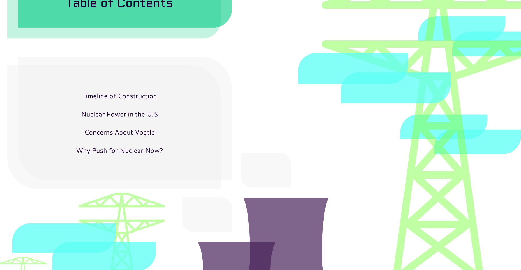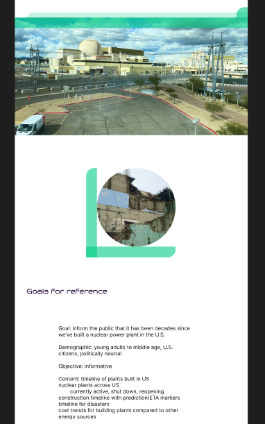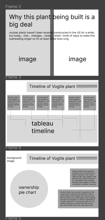 This Figma project was a collaboration with my IM 363 class (topics in UX design) and a COM 425 class (journalism). We were assigned partners that were writing news articles, and us design students were tasked with designing interactive elements around the article. My partner, Miranna Berles, was writing about the construction of a new nuclear reactor in Georgia.